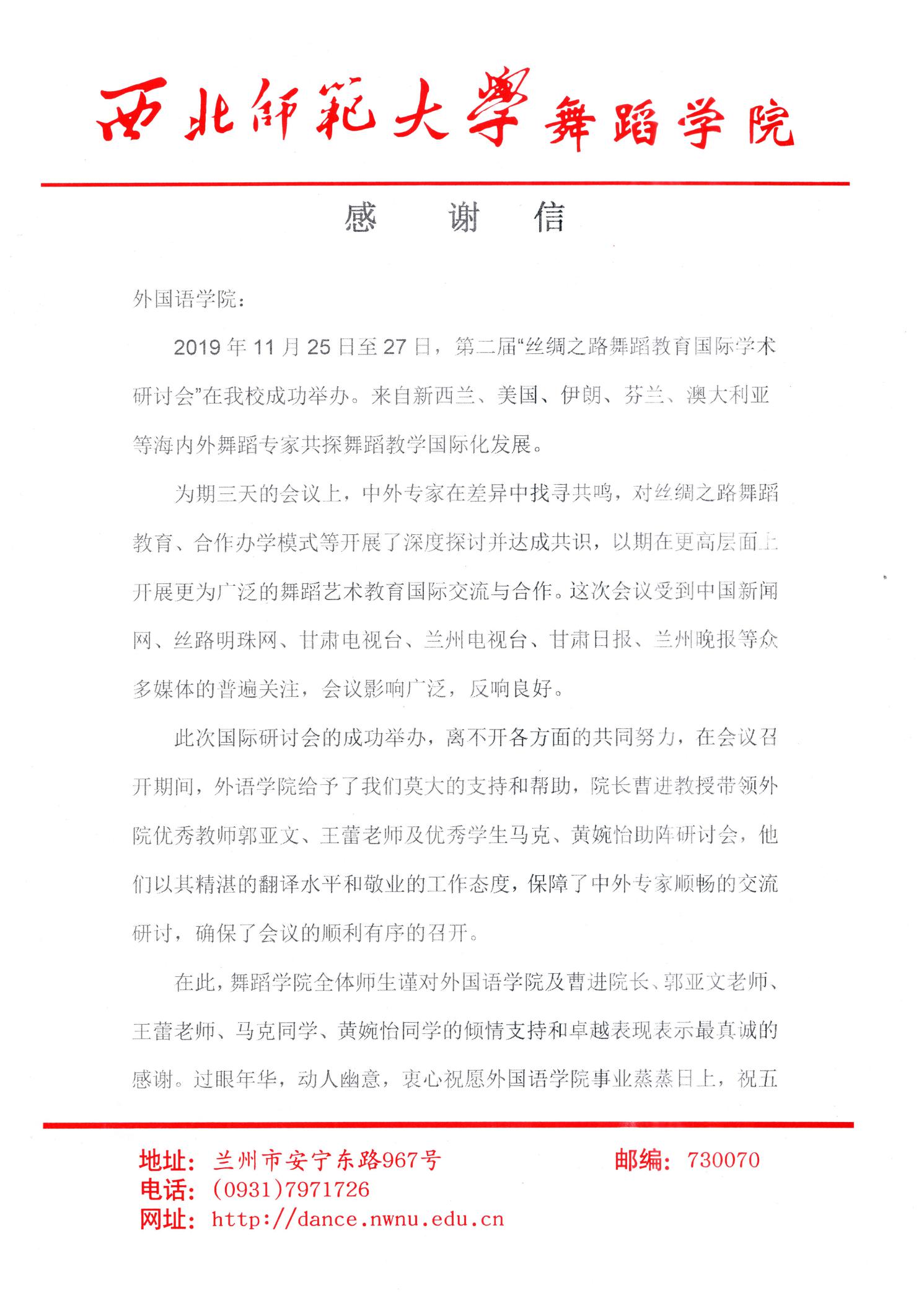 2019年11月25日-27日,第二届“丝绸之路舞蹈教育国际学术研讨会”在公司成功举办。来自新西兰、美国、伊朗、芬兰 、澳大利亚等海内外舞蹈专家共探舞蹈教学国际化发展。为期三天的会议上,中外专家在差异中找寻共鸣,对丝绸之路舞蹈教育、合作办学模式等开展了深度探讨并达成共识,以期在更高层面上开展更为广泛的舞蹈艺术教育国际交流与合作。