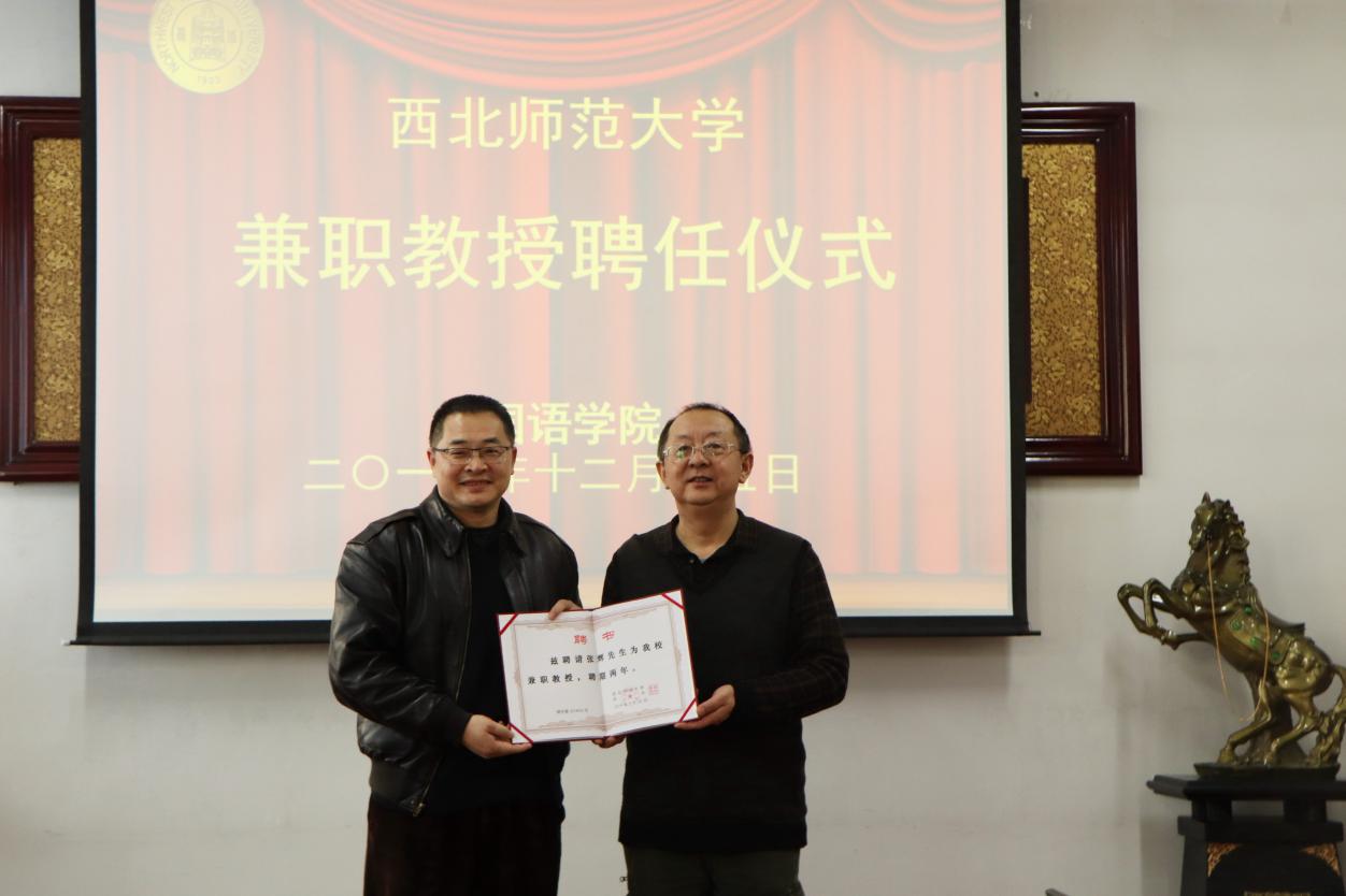 2019年12月15日,国内知名学者,认知语言学及神经语言学研究专家,南京师范大学教授、博士生导师张辉先生,受聘为“英国正版365官方网站兼职教授”聘任仪式在英国上市公司官网365会议室隆重举行。聘任仪式由英国上市公司官网365副经理高育松教授主持。聘任仪式上,高育松教授首先详细介绍了张辉教授个人情况和学术成果;随后,英国上市公司官网365经理曹进为其颁发聘书并致贺辞;最后,张辉教授做受聘感言,并表示会尽全力帮助、支持公司团队建设及学术发展。