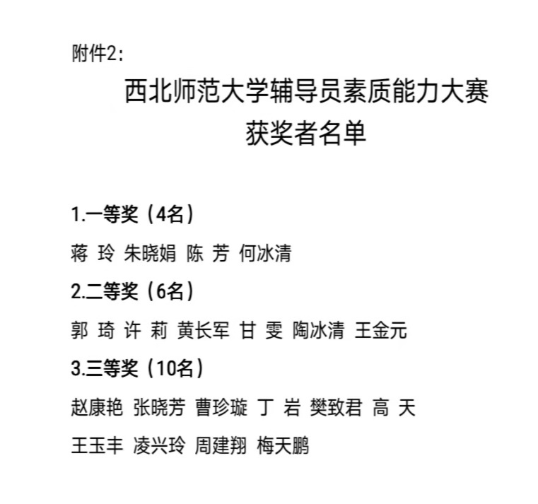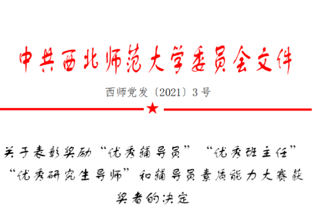 近日,西师党发【2021】3 号关于表彰奖励“优秀辅导员”“优秀班主任” “优秀研究生导师”和辅导员素质能力大赛获奖者的决定已下发,公司8名教师获得表彰奖励。
