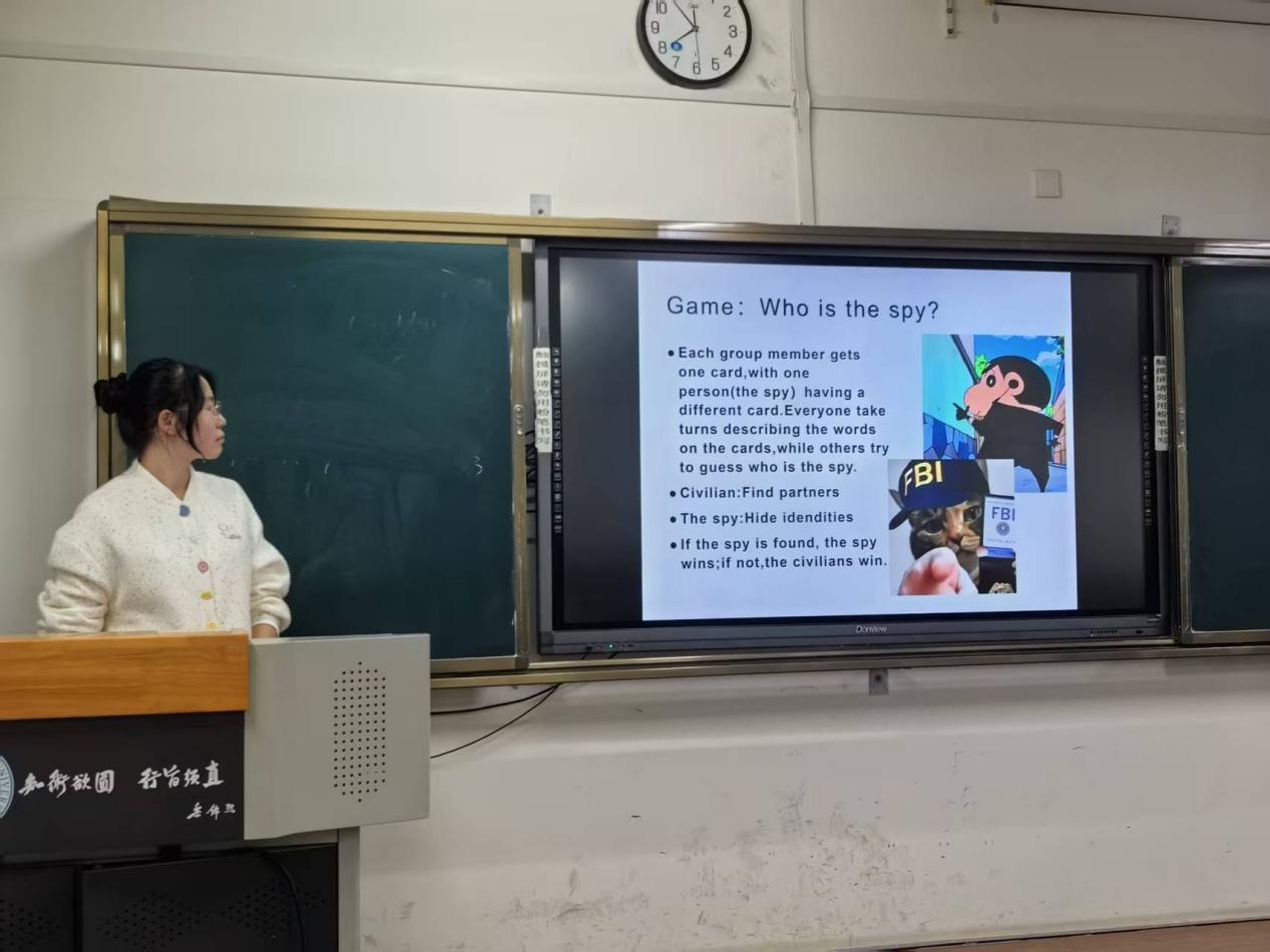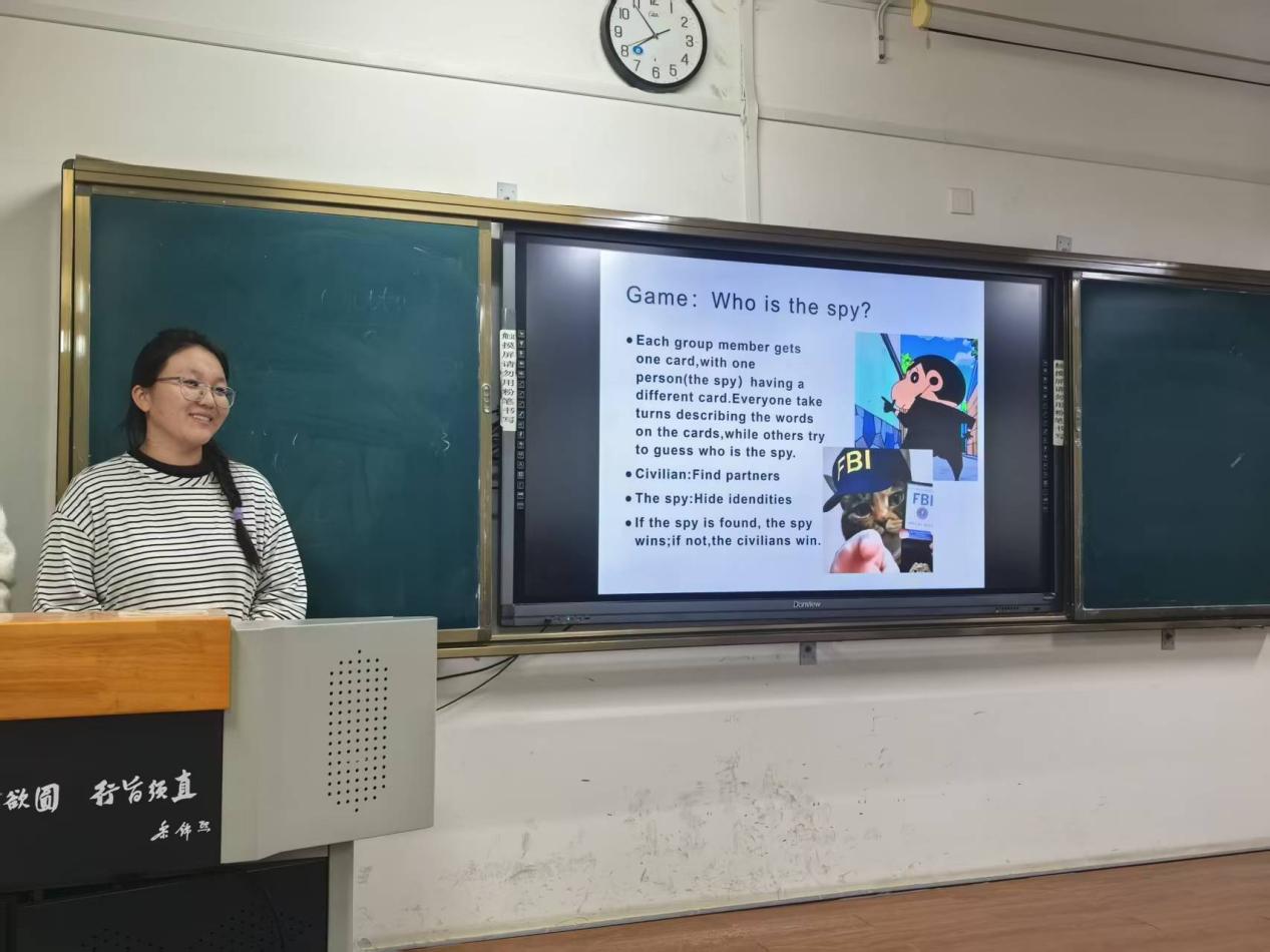 活动伊始,一场有趣的破冰游戏“Who is the Spy(谁是卧底)”迅速点燃了现场气氛。同学们在紧张而有趣的推理与英文陈述中打破隔阂,笑声与掌声不断,现场氛围瞬间活跃起来。