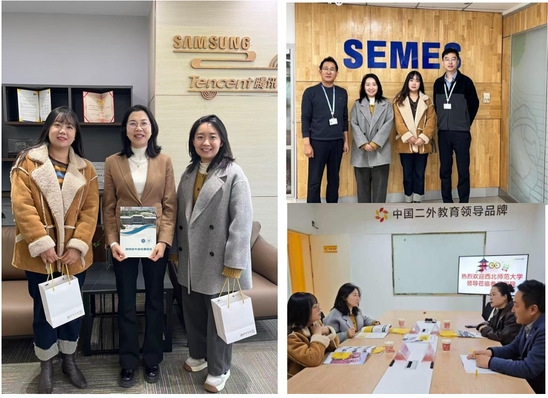 朝鲜语系教师先后访问了三星财产保险(中国)有限公司、三星旗下半导体设备企业Semes(西安)公司、洋光小语种培训中心及西安思想家语言培训学校。朝鲜语系教师深入了解了当前韩语人才的市场需求与就业形势,并与各企业就员工实习实践、课程共建及人才联合培养等议题进行了务实洽谈,在实习基地建设与产学研协同育人方面初步达成合作共识,展示了朝鲜语系毕业生在跨文化沟通与专业服务方面的复合型优势。