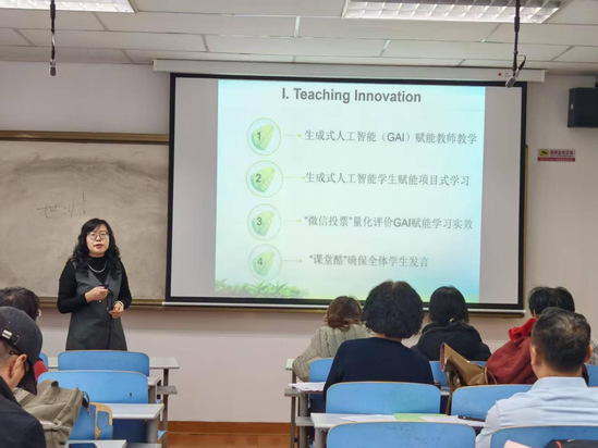 比赛设“教学设计方案提交与评审”“现场教学创新汇报”两大环节。前者要求体现“以员工为中心”的创新设计与实践反思;后者为10分钟教学创新汇报,聚焦信息化应用、课程思政融合等创新点。评审组从“创新性”“科学性”“实践性”“示范性”四维度综合考评,重点关注课程思政、能力培养及技术赋能等指标。最终经过评审,陈倩老师的《高级英语》教学团队、王茹花老师的《中国传统文化溯源概览》教学团队、魏欣老师的《交替口译》教学团队、韩文菊老师的《中国文化概要》教学团队将代表学院参加校级比赛。后续,学院将通过官网等渠道推广获奖教师的创新案例,发挥示范引领作用。
