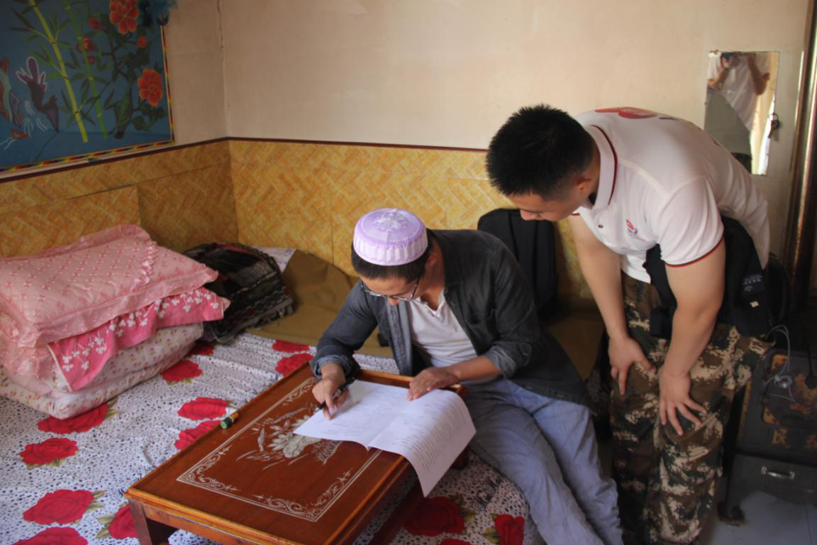 图为实践队员邀请村民填写调查问卷中国青年网通讯员 马宝俊 摄