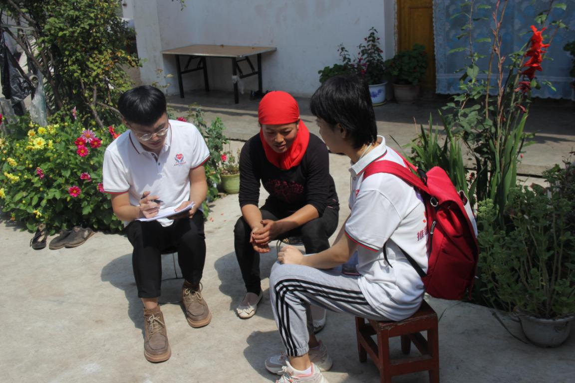 图为实践队员与村民交流普通话使用情况中国青年网通讯员 马宝俊 摄